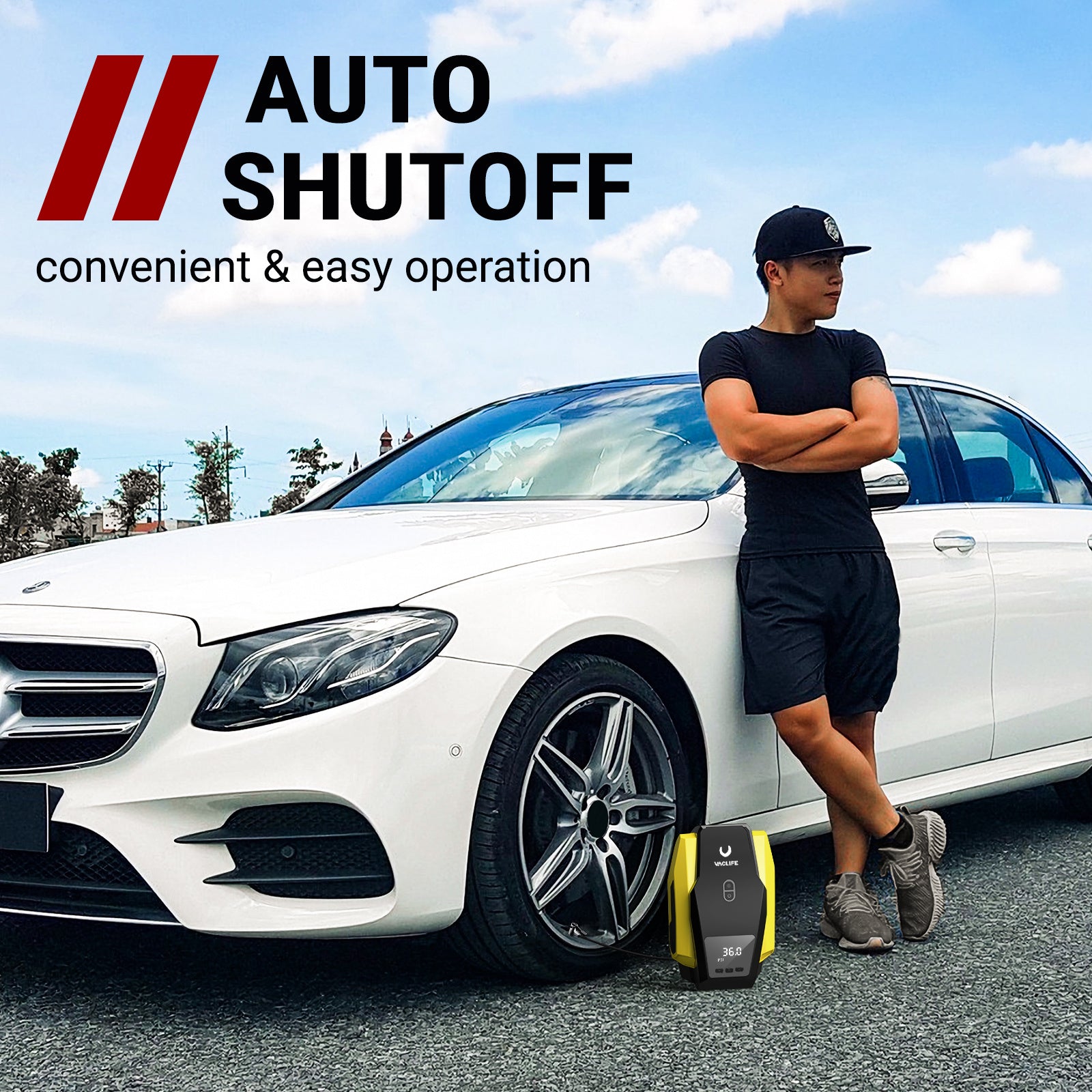 - [Automatic Shutdown] The portable air compressor is based on the automatic shutdown function, providing you with a reliable user experience. Set the required pressure level and start the inflation operation. When our car tire inflator reaches the required pressure, the car air compressor automatically turns off, so you don't have to worry about over inflation.